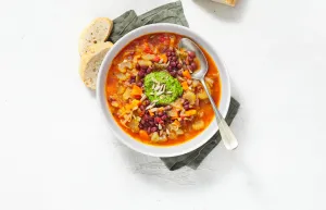Voeg de adukibonen bij de groenten samen met 300 ml kokend water en ½ blokje bouillon. Breng de soep al roerend aan de kook en laat nog 10 minuten zachtjes afgedekt doorkoken.