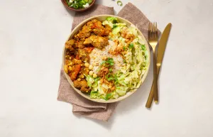 Birmese kipcurry met kikkererwt-rijst en ‘stir fried cabbage and egg’