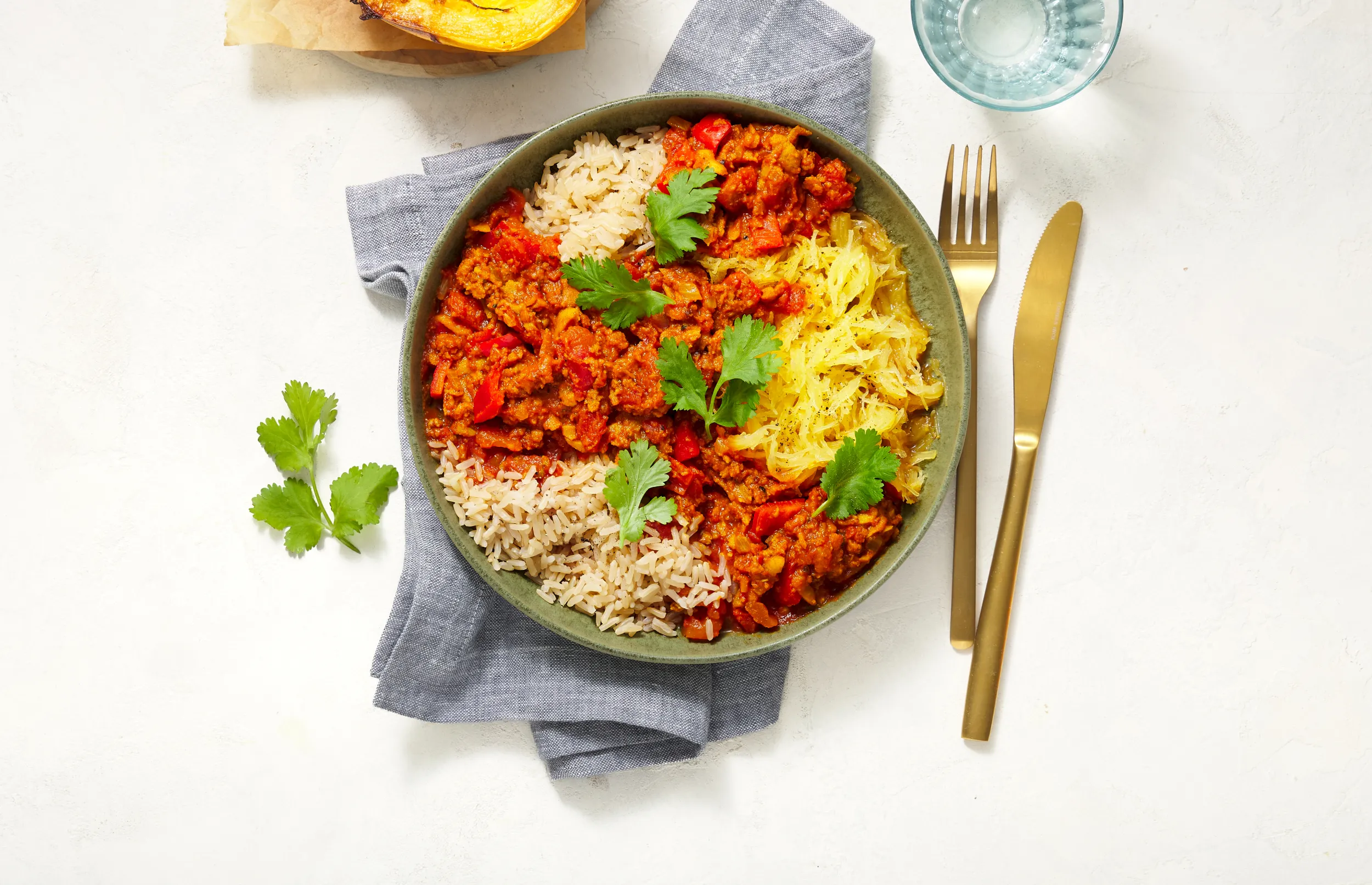 Serveer de saus met de rijst en garneer met de koriander.