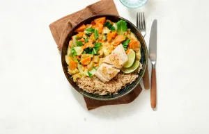Serveer de curry met de vis en de rijst. Laat ieder er limoensap naar smaak over knijpen.
