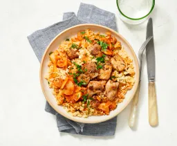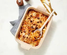 Pluk 200 g tofu grof in stukken. Breng goed op smaak met flink peper, zout en ½ tl kerriepoeder. Besprenkel met olie. Verdeel over een met bakpapier beklede bakplaat en bak 15 minuten in de oven.