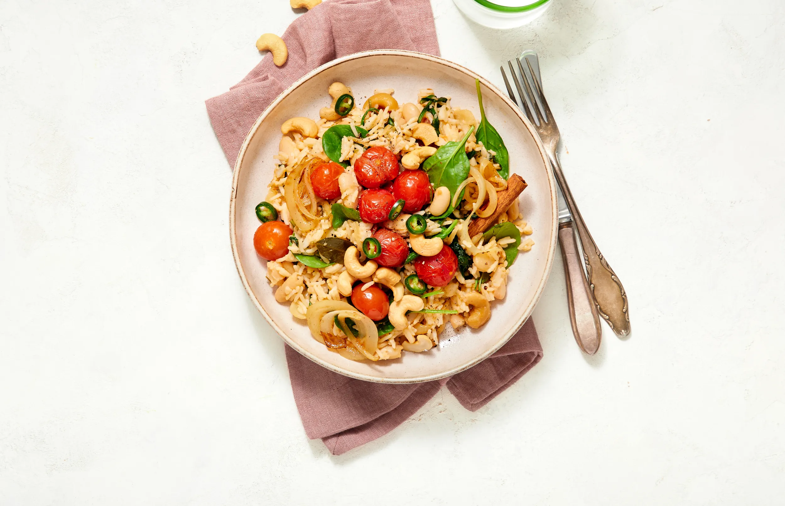 Serveer de pilav met de overige cashewnootjes.