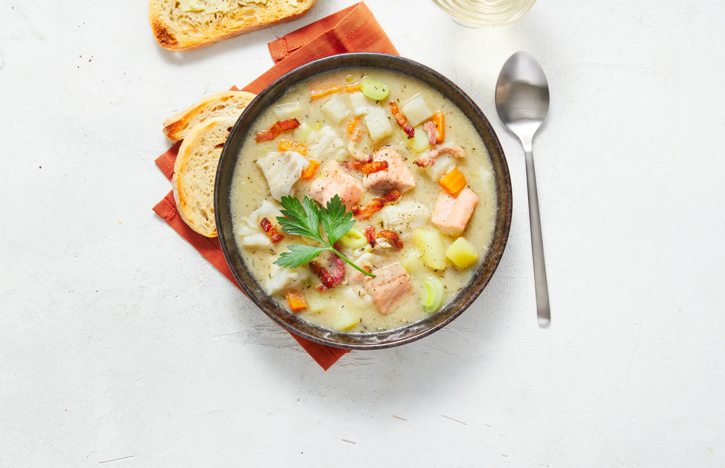 Goed om te weten: De bouillabaisse visstukjes kunnen heilbot, heek, kabeljauw, schol en/of zalm bevatten.