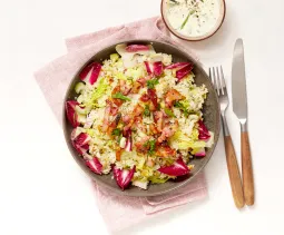 Maak de croutons. Verhit olie in een koekenpan op middelhoog vuur. Snij 1 stuk ciabatta in blokjes van ca. 2 cm. Bak de croutons al schuddend bruin en knapperig. Meng in een kommetje de 1 olie , 2 el miso en ½ el sojasaus. Draai het vuur uit. Voeg het mengsel toe aan de pan en schud een paar keer flink om, zodat elk stukje brood bedekt is. Laat even afkoelen op een bord (zie tip).